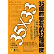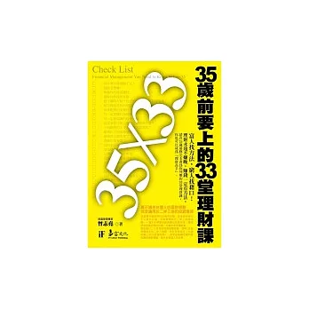 榮獲2005年、2006年各大書店暢銷排行榜冠軍書——《35×33》系列作品,2007年又一力作《35歲前要上的33堂理財課》。首次結合最具人氣與買氣的理財議題,加上暢銷書《35歲前要有錢》作者曾志堯先生親自操刀,為您整理35歲前一定要知道的33堂理財課程,相信《35歲前要上的33堂理財課》即將再次掀起一波暢銷書熱潮。